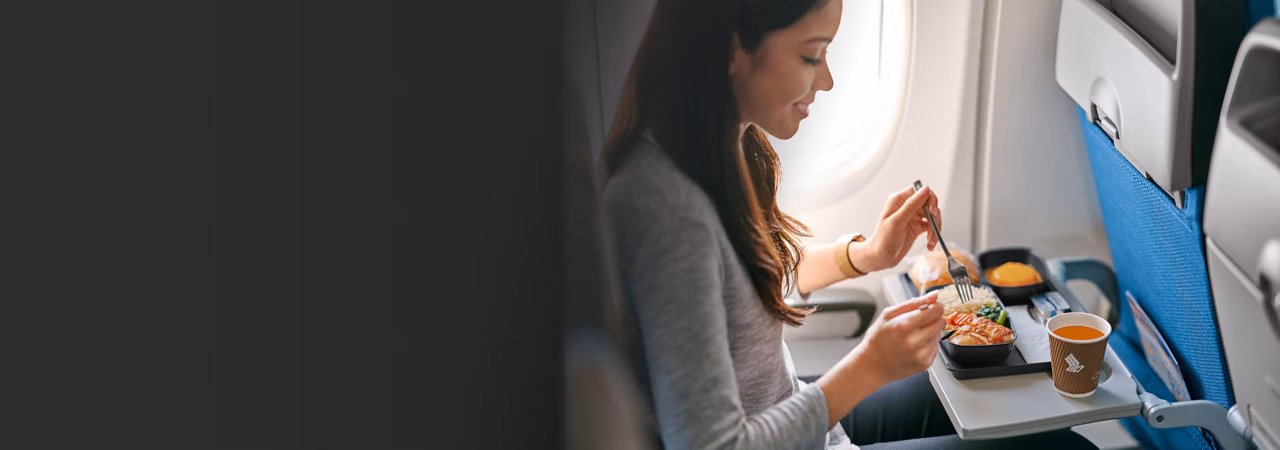 Anda dapat melihat makanan, minuman, fasilitas, dan camilan dalam penerbangan Anda sebelum penerbangan melalui menu digital kami hingga delapan hari sebelum penerbangan.