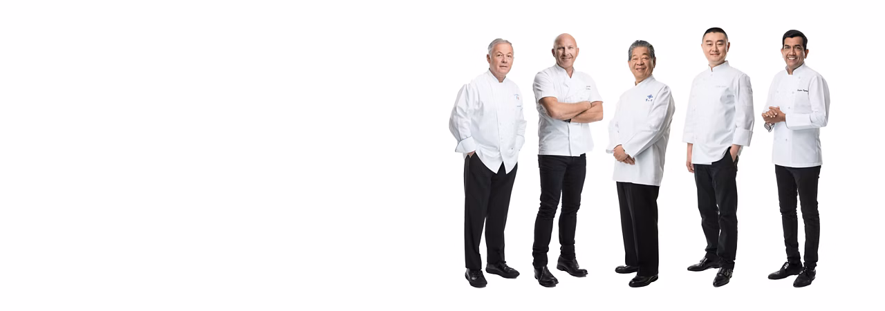 Tidak hanya satu, namun lima koki terkenal dunia dari Panel Kuliner Internasional (ICP) kami. Terinspirasi oleh budaya dan pengalaman mereka, dan tempat yang kami singgahi, tim koki terkenal kami selalu membuat makanan baru untuk Anda.