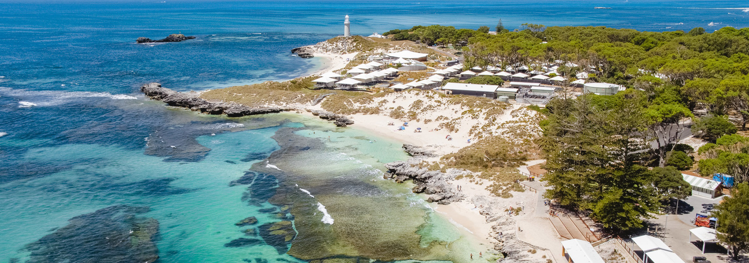 パースからフェリーで短時間の旅で辿り着けるロットネスト島は、全体がA級の自然保護指定の国立公園になっていて、天然の美しさと親しみやすい野生生物が魅力の楽園です。地球上でもっとも幸せな動物と呼ばれるクオッカとの出会いは、忘れられない思い出となることでしょう。島内は自転車での探検ができ、いくつもの美しいビーチと透き通った海を楽しむ絶好の機会が島中に広がっています。フェリー桟橋エリアには、ビジターセンターをはじめ、レストラン、宿泊施設などがそろっていて、日帰りでも十分に楽しめる島ですが宿泊するのがお勧めです。